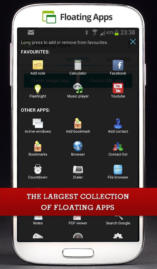 Приложение оснащено множеством полезных функций, которые помогут вам повысить производительность, например, плавающий калькулятор, плавающий браузер, плавающий проигрыватель YouTube, плавающий музыкальный проигрыватель и многое другое. Вы можете настроить размер и положение каждого плавающего окна, а также создавать собственные плавающие окна с помощью встроенного механизма HTML/JavaScript.