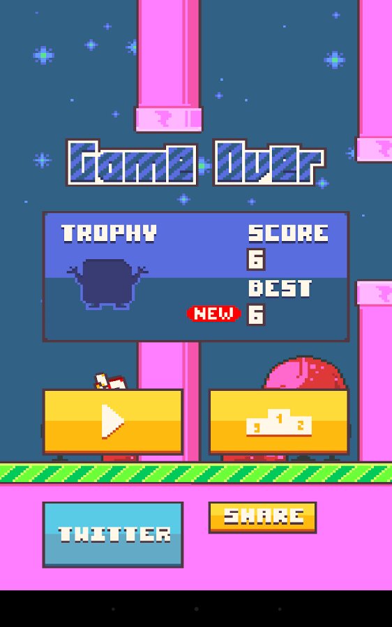 Floppy bird — новая игра похожая на Flappy bird, в которой вам надо помочь птичке от труб. Особенности: