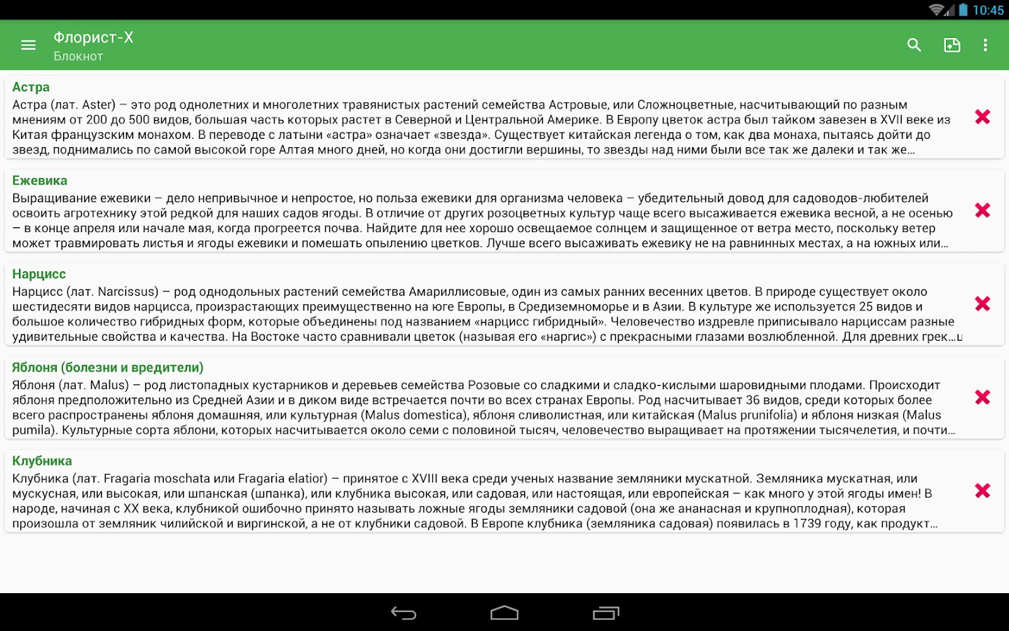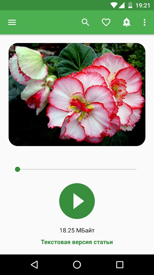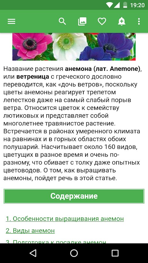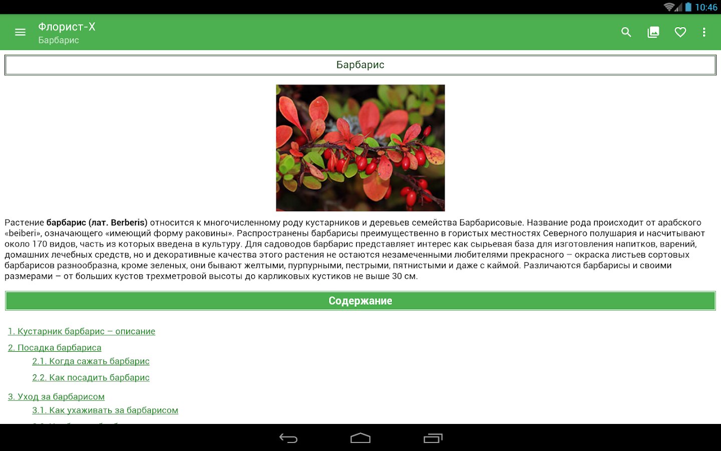 - главное изображение растения и все тексты доступны оффлайн, чтобы нужная информация всегда была под рукой независимо от наличия интернета. Доступ к интернету необходим только для отображения дополнительных изображений. Если проблем с интернетом не бывает, можно установить галочку, чтобы фотографии подгружались автоматически при открытии статьи.