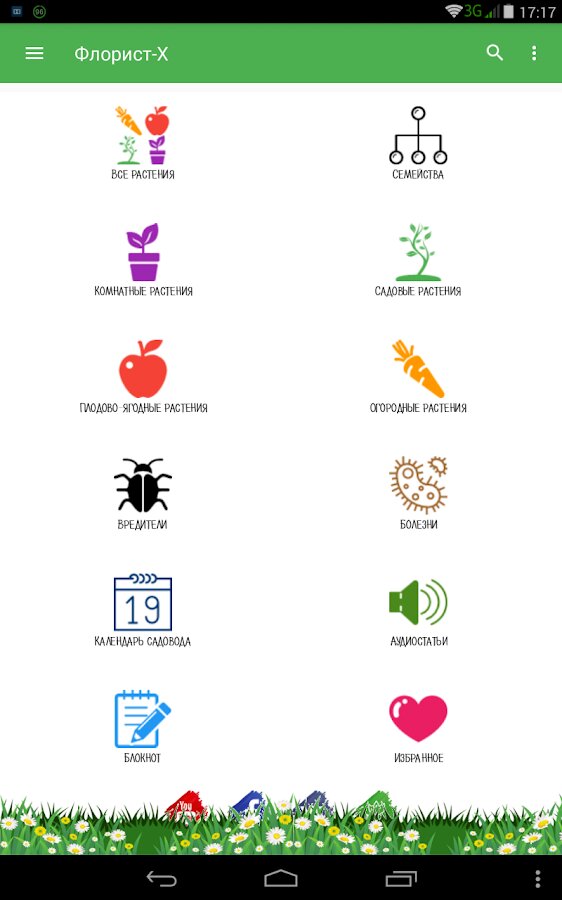 - удобная категоризация – 4 основных раздела, в каждом из которых есть подразделы, которые облегчают поиск информации о нужном комнатном или садовом растении;