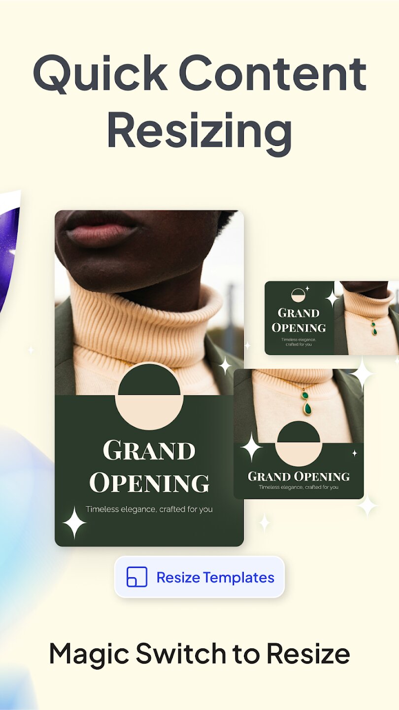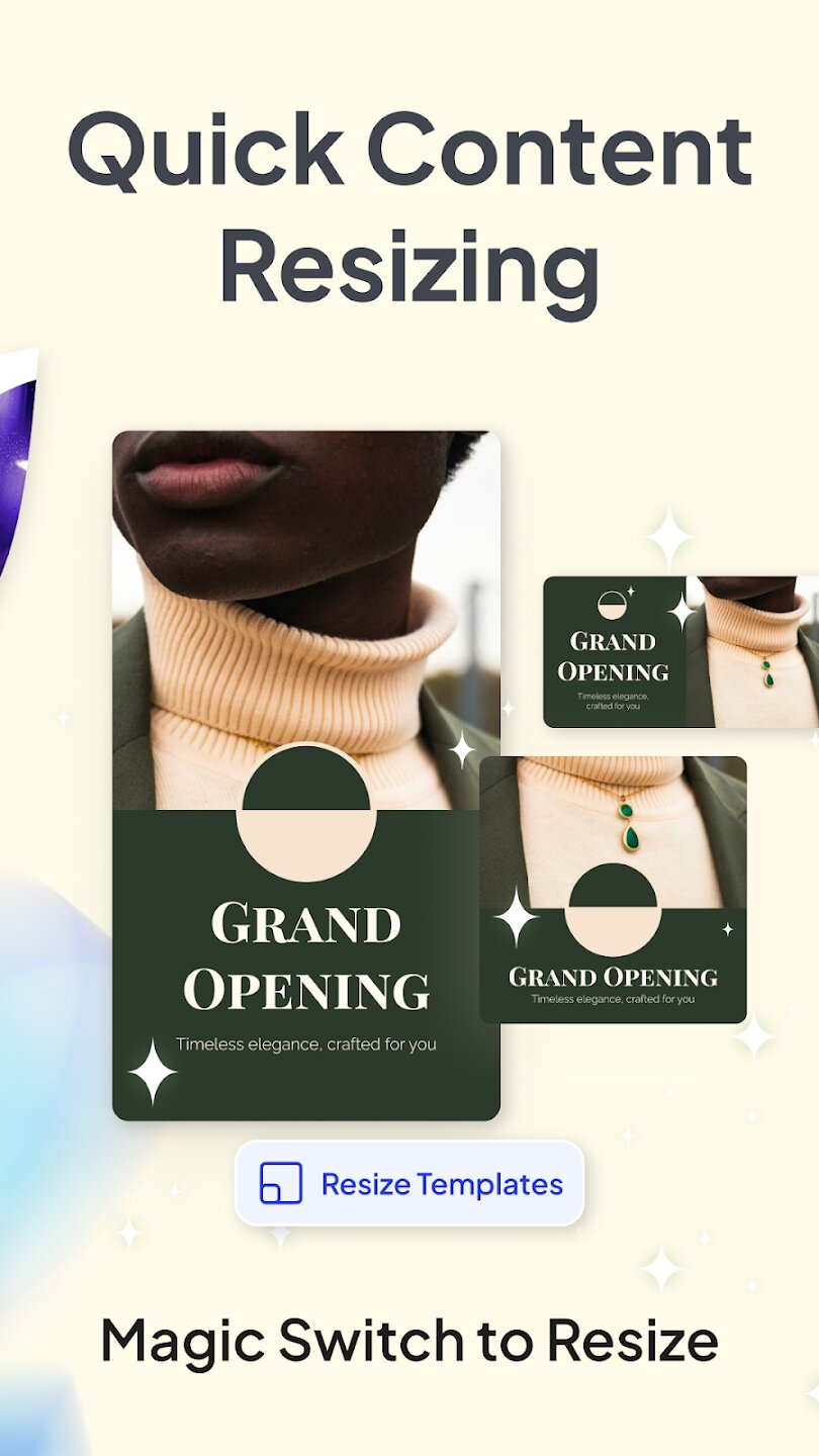 - Потрясающие маркетинговые визуальные эффекты: одним щелчком мыши создавайте эффектные публикации в социальных сетях, веб-рекламу, информационные бюллетени и многое другое.