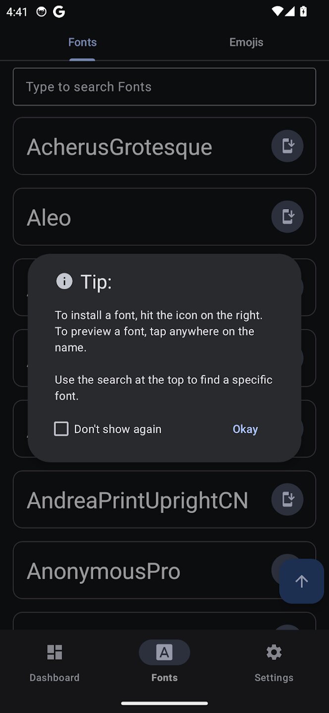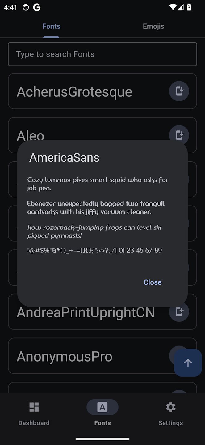 Font Manager от Androidacy обеспечивает беспрецедентный уровень персонализации вашего устройства, уделяя особое внимание типографике и эмодзи. Это мощное приложение предоставляет вам доступ к обширной, постоянно обновляемой библиотеке шрифтов и наборов эмодзи, позволяя вам отойти от стандартного внешнего вида системы. Благодаря интуитивно понятному интерфейсу, построенному на современных принципах Material Design 3, применение нового глобального шрифта или обновление набора эмодзи — это простой процесс, который придает вашему устройству индивидуальность, соответствующую вашему стилю.