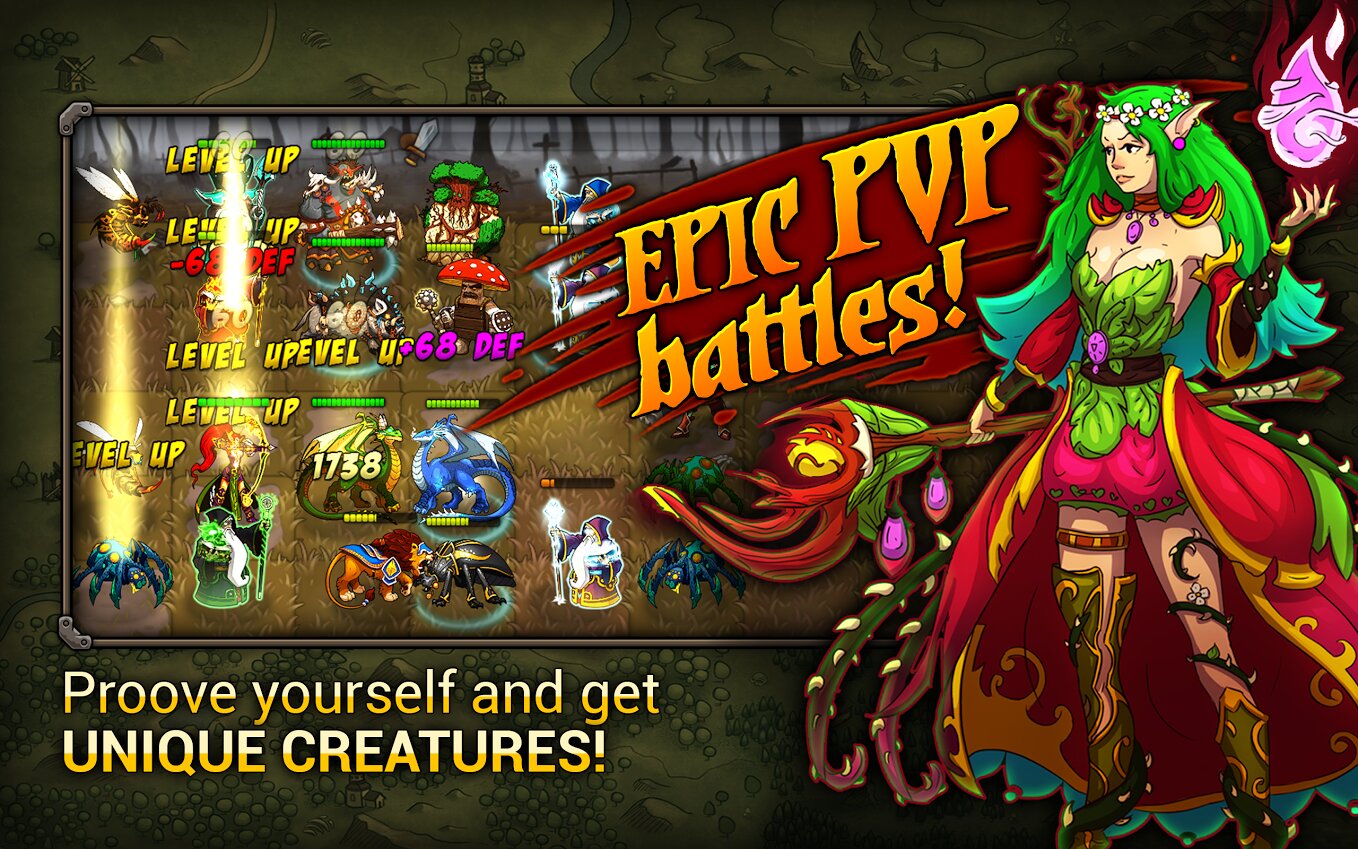 Прокачивайте каждого монстра, приносите слабых в жертву сильным, СКРЕЩИВАЙТЕ существ, чтобы создать новых БОГОВ ВОЙНЫ!