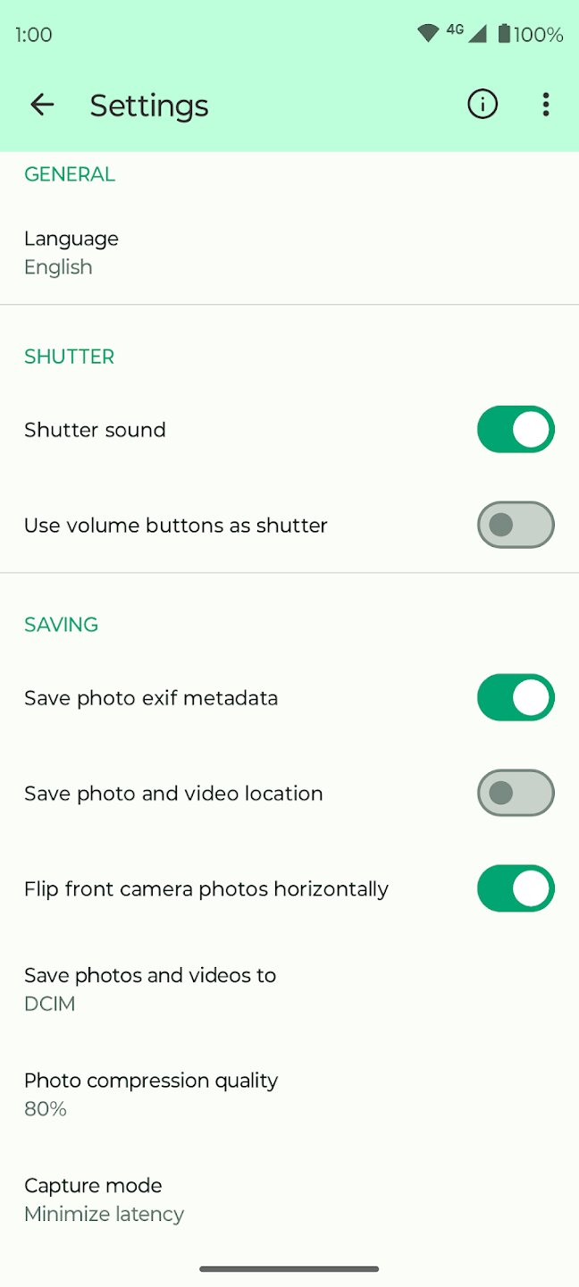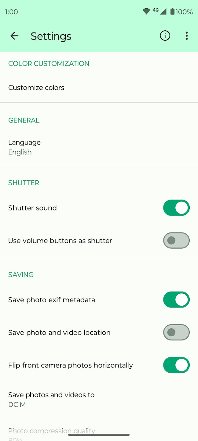 - 🖼️ ПОЛНАЯ НАСТРОЙКА: Персонализируйте каждый аспект работы камеры. Настройте качество вывода, измените путь сохранения и установите разрешение в соответствии с вашими потребностями. Вы даже можете настроить цвета и темы в соответствии со своим стилем.