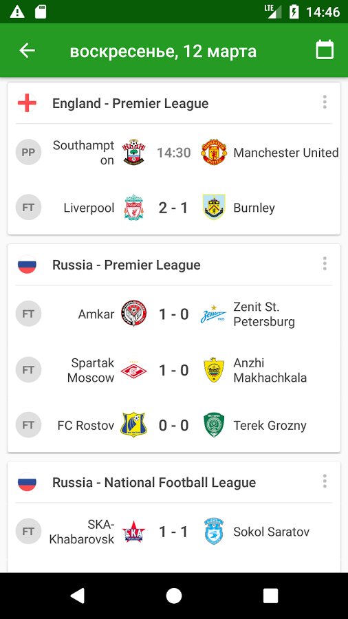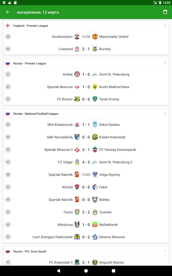 - Результаты и подробная статистика матчей в реальном времени
