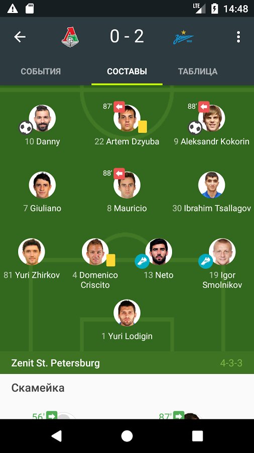 - Оповещения о Ваших любимых клубах и игроках