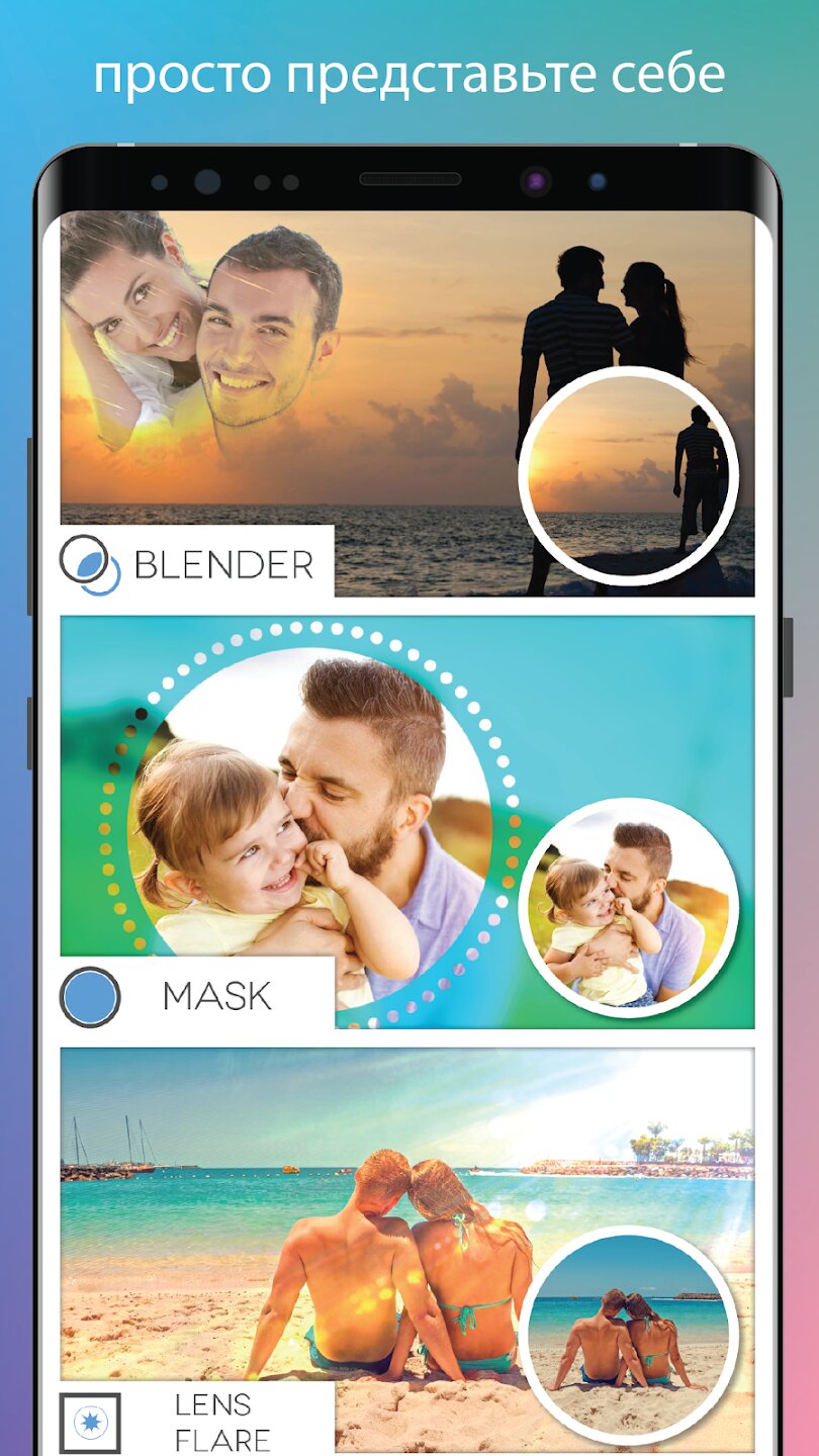 - Художественные эффекты: фильтры, текстуры, световые блики, режимы наложения