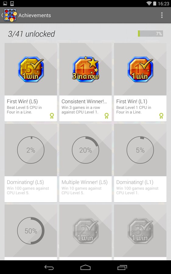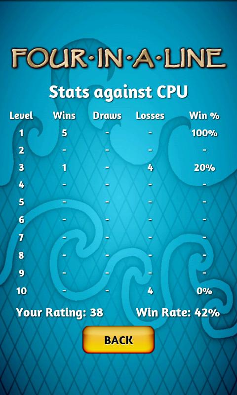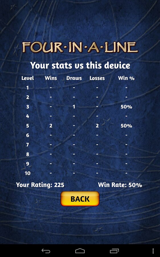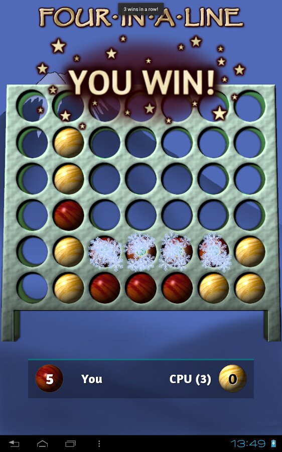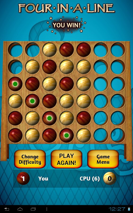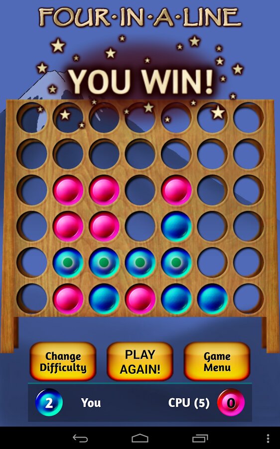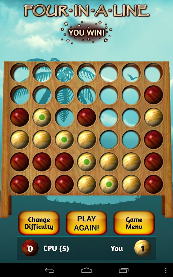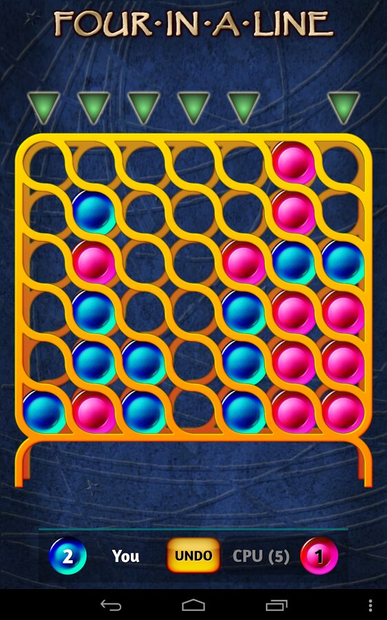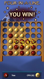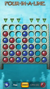 Four In A Line Free — неплохая головоломка для Android-смартфонов и планшетов, в которой пользователю необходимо выстроить четыре фишки одного цвета в линию по горизонтали, вертикали или диагонали. В игре доступно десять уровней сложности (от новичка до эксперта), присутствует возможность играть как с AI, так и с другим человеком на одном устройстве, можно выбирать цвет фишек и доски, ведется детальная статистика для каждого уровня сложности, присутствует функция отмены хода и встроенный помощник.