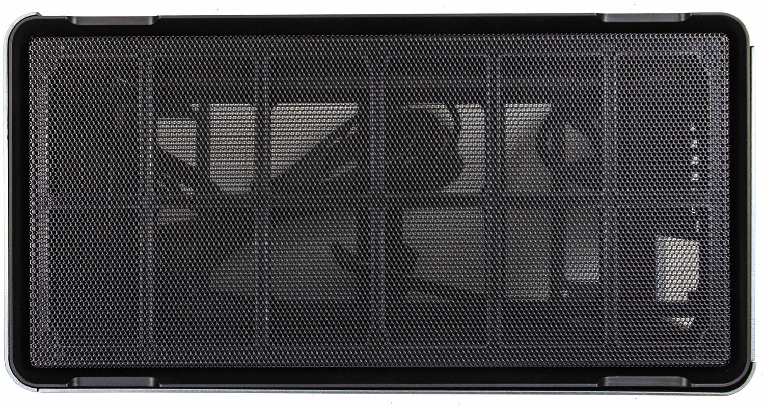 Пару слов о кулере на процессор. Под тот же 3900X брали кулер с горизонтальным расположением радиатора. Вентилятор заменен на 12,5-мм «стодвадцатку», которая очень удачно «подсасывает» холодный воздух из перфорированных боковых стенок через пылевые фильтры. Поэтому, на месте разработчиков я бы сделал вторую версию корпуса, в которой увеличил диаметр отверстий в стенках раза в два, приложив заглушки (куски мягкого пластика по форме пылевых фильтров). Также вырезал бы решетку за 80-мм вентилятором, поставив проволочную. Ну и до кучи доработал бы основание, добавив прорезей в пластиковый «поддон» и предусмотрев свободное монтирование 120-мм вентиляторов.