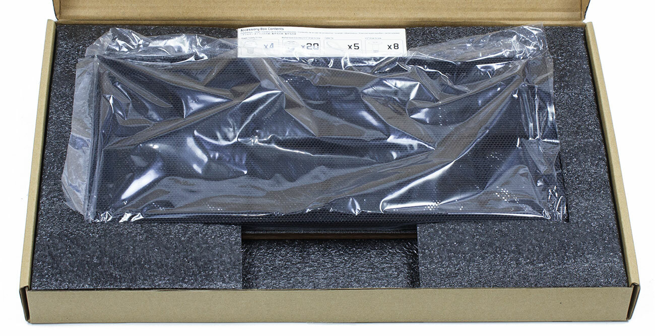 В комплекте с корпусом идет стандартный набор дополнений: винты, стяжки. Инструкция по сборке осталась в коробке, сразу скачал с сайта PDF-версию, на большом мониторе изучать удобнее.