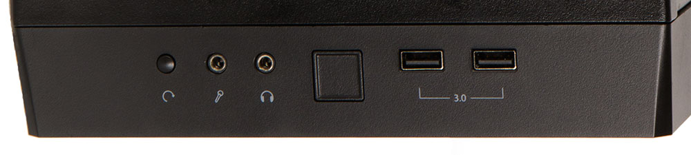 На пластиковой рамке смонтированы органы управления: кнопки включения, перезагрузки, пара USB 3.0 и два аудиоджека. Вполне достаточный набор.