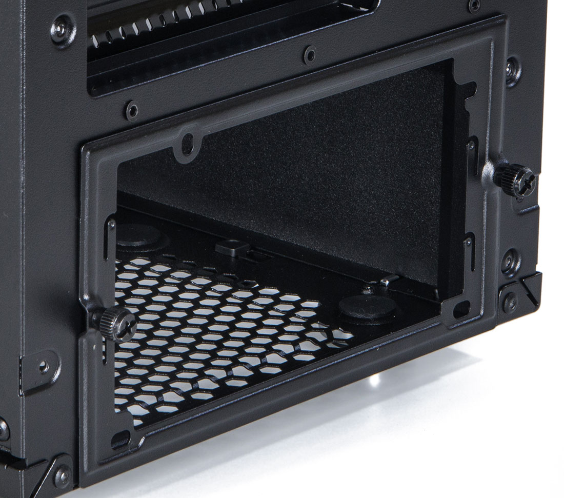 Как вариант, можно демонтировать отсек для 3,5’’ накопителей, но я бы не советовал – расположен он удобно и практично, на пути воздушных потоков от лицевого вентилятора к БП