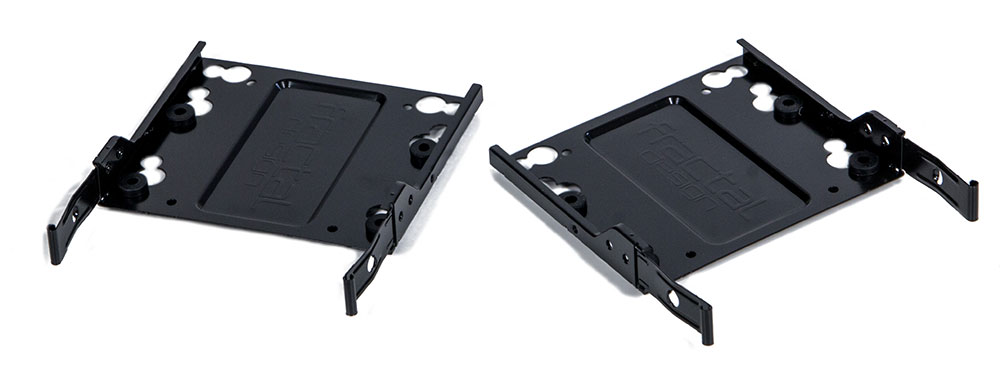 Сами диски крепятся к салазкам через резиновые проставки, снижающие передаваемую на металл корпуса вибрацию. Предусмотрены отверстия и для 2,5’’ накопителей.