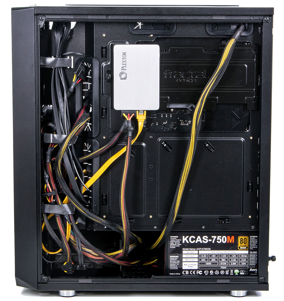 Для SATA SSD лучше воспользоваться посадочными местами за матплатой – и кабели под углом не нужно прокладывать, и место экономится.