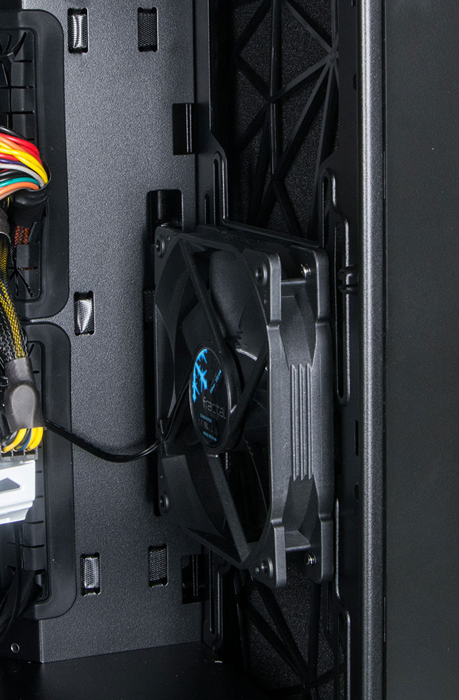 Лучше всего поступить так: два-три вентилятора на передней стенке закачивают холодный воздух, а один на задней стенке удаляет нагретый воздух от кулеров. Если добавятся два вентилятора с радиатором системы жидкостного охлаждения, то на заднюю стенку можно ничего не ставить.