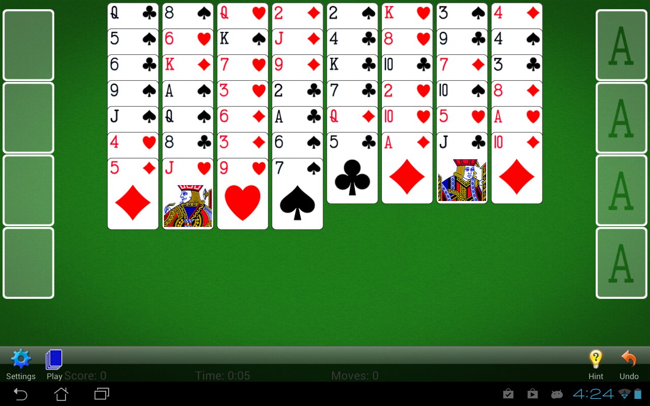 - Классический игровой процесс пасьянса FreeCell