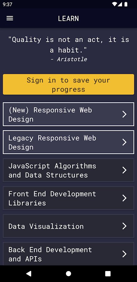 Наше мобильное приложение включает в себя наши задачи, учебные пособия, Code-Radio и службы подкастов, чтобы ускорить ваши знания в области кодирования! Если вы используете приложение в течение достаточно долгого времени, вы можете рассмотреть возможность добавления собственного вклада в приложение, посетив нашу платформу с открытым исходным кодом на GitHub.