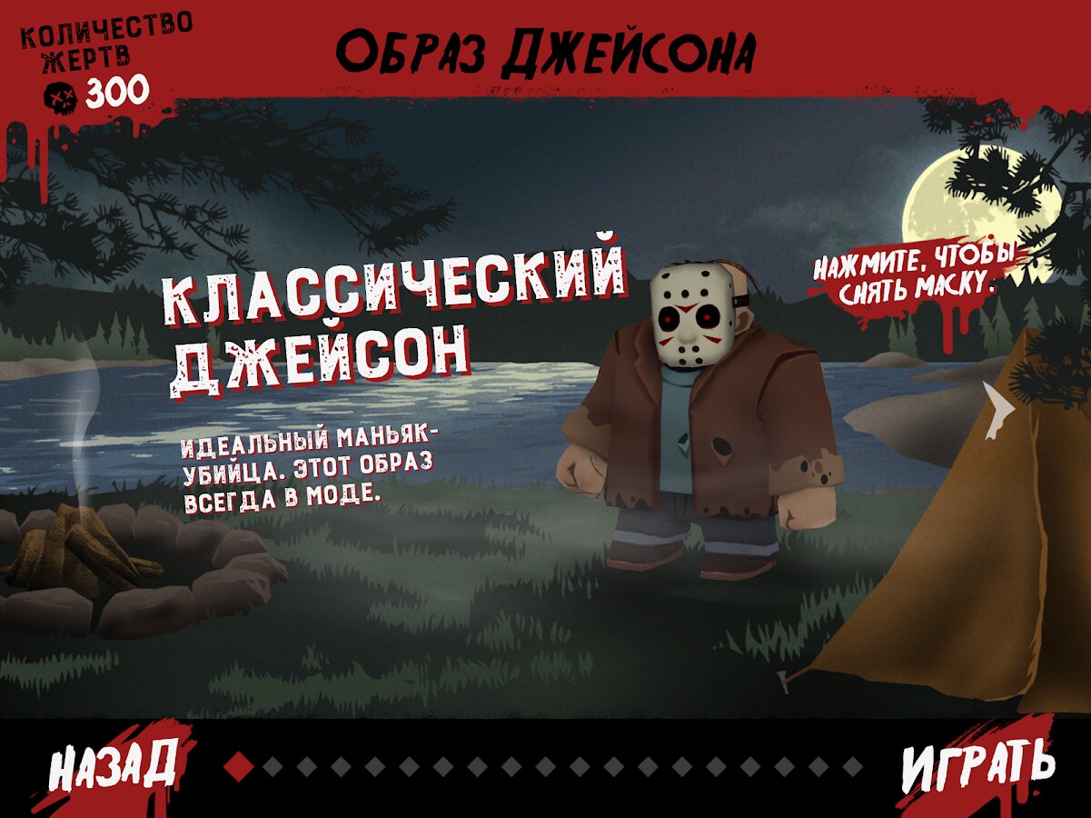 - Не требует подключения к интернет! Играйте в самолете, автобусе, или в лесу вокруг костра… только не позволяйте Джейсону найти вас!