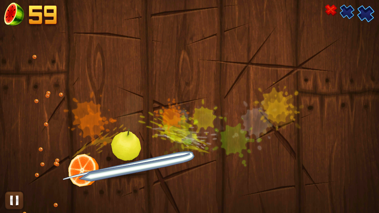 Fruit Ninja — аркада, в которой задача игрока – разрезать фрукты на скорость, от которой зависит набор очков, и не разрезать периодически возникающие бомбы.