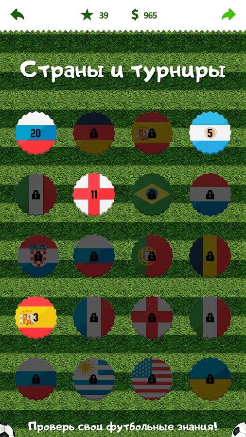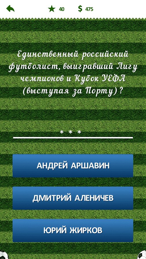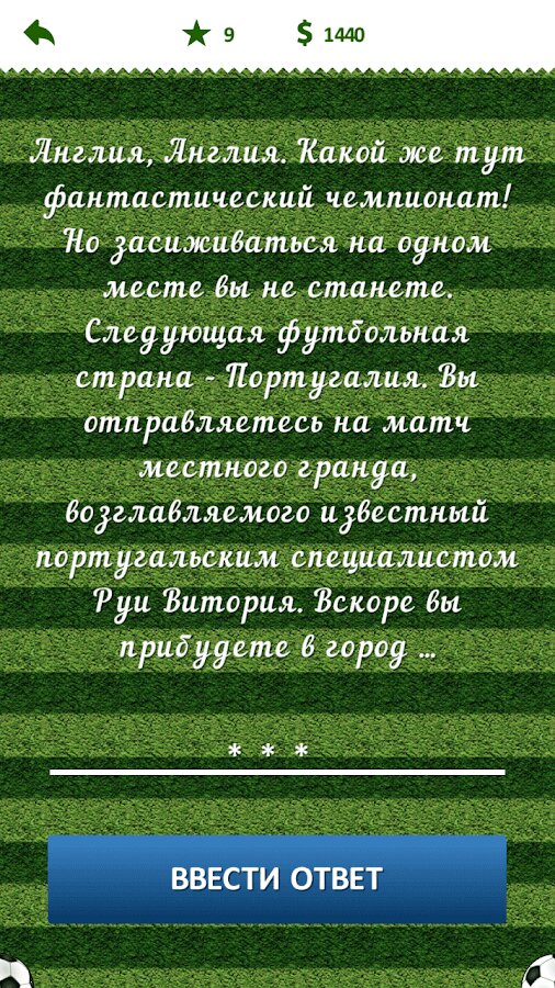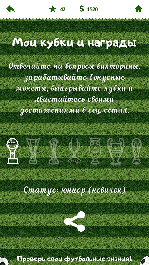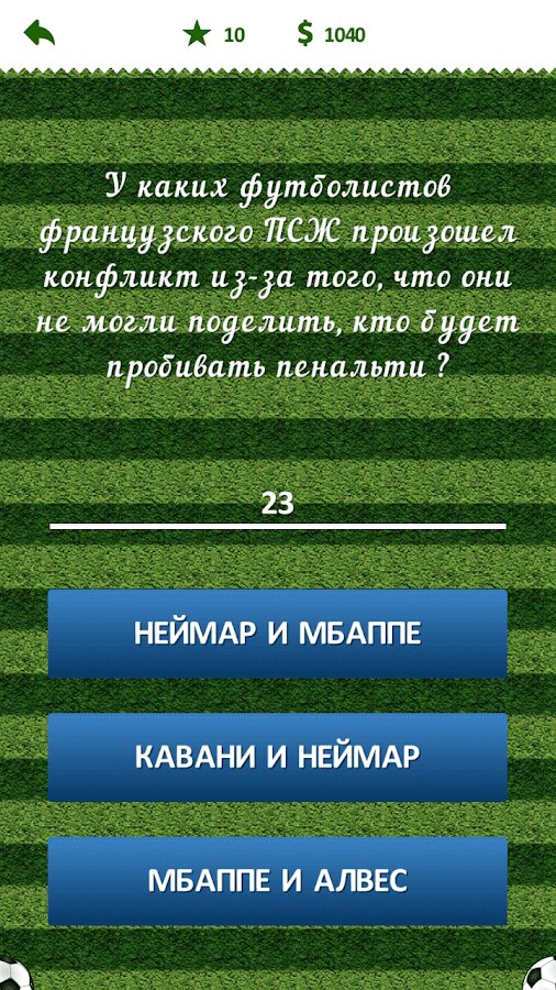 Футбольная викторина — приложение будет интересно если вы следите за новостями мирового футбола и поддерживаете любимую команду. В игре вас ждут вопросы о различных странах и чемпионатах, о лучших футболистах и тренерах. Уже сейчас вы можете проверить свои футбольные знания.