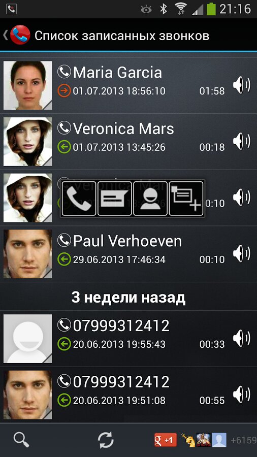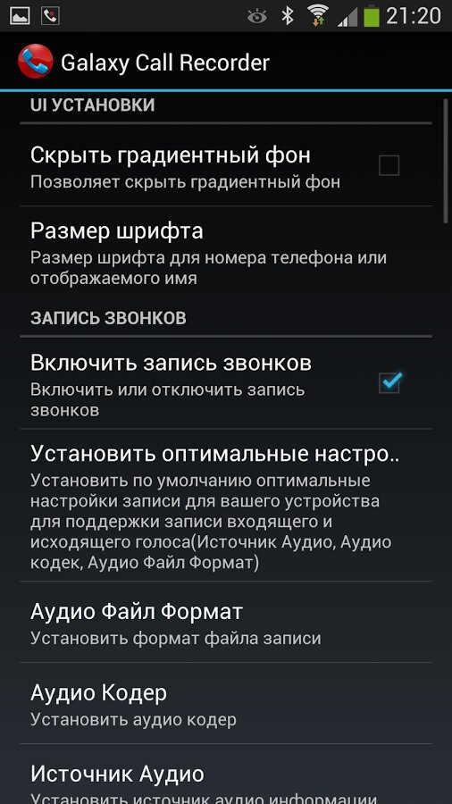 Программа дает возможность для удаления записей, при их устаревании или когда продолжительность записи не была достаточной, для сохранения. Кроме того, можно отключить запись, при подключении и использовании наушников или Bluetooth-гарнитуры.