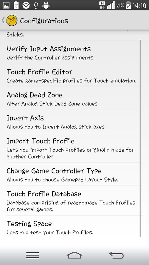 Game Controller 2 Touch — это уникальное приложение, которое позволяет Android геймерам использовать свои USB/Bluetooth Контроллеры в почти любой игре для Android OS. Он может эмулировать действия на сенсорном экране игровой контроллер ввода. Он легко настраивается и имеет удобный сенсорный интерфейс. Приложение поддерживает контролеры PS и Xbox :( также добавлена поддержка PS4 DualShock 4