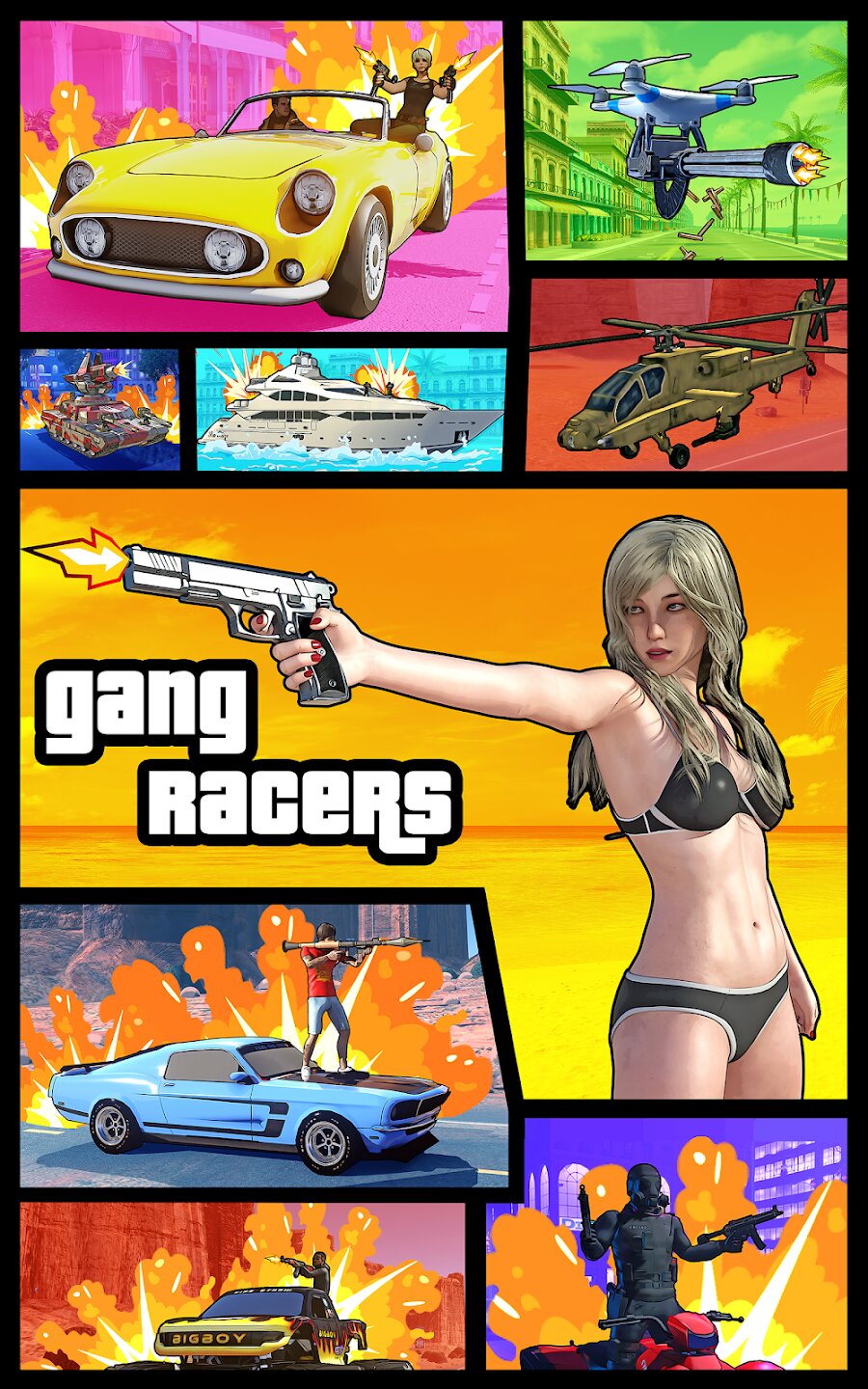 Gang Racers — это взрывная аркадная игра про автомобильные бои, действие которой происходит в городе, управляемом мафией.