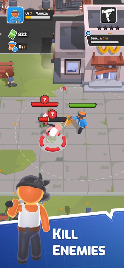 В Gangsta Rage вы начнёте с небольшого дела и постепенно расширите свои территории, набирая команду профессиональных стрелков и грабителей. В игре сочетается стратегия и экшен: планируйте свои ходы, управляйте огневыми боями и захватывайте новые районы, чтобы укрепить власть в преступном мире.