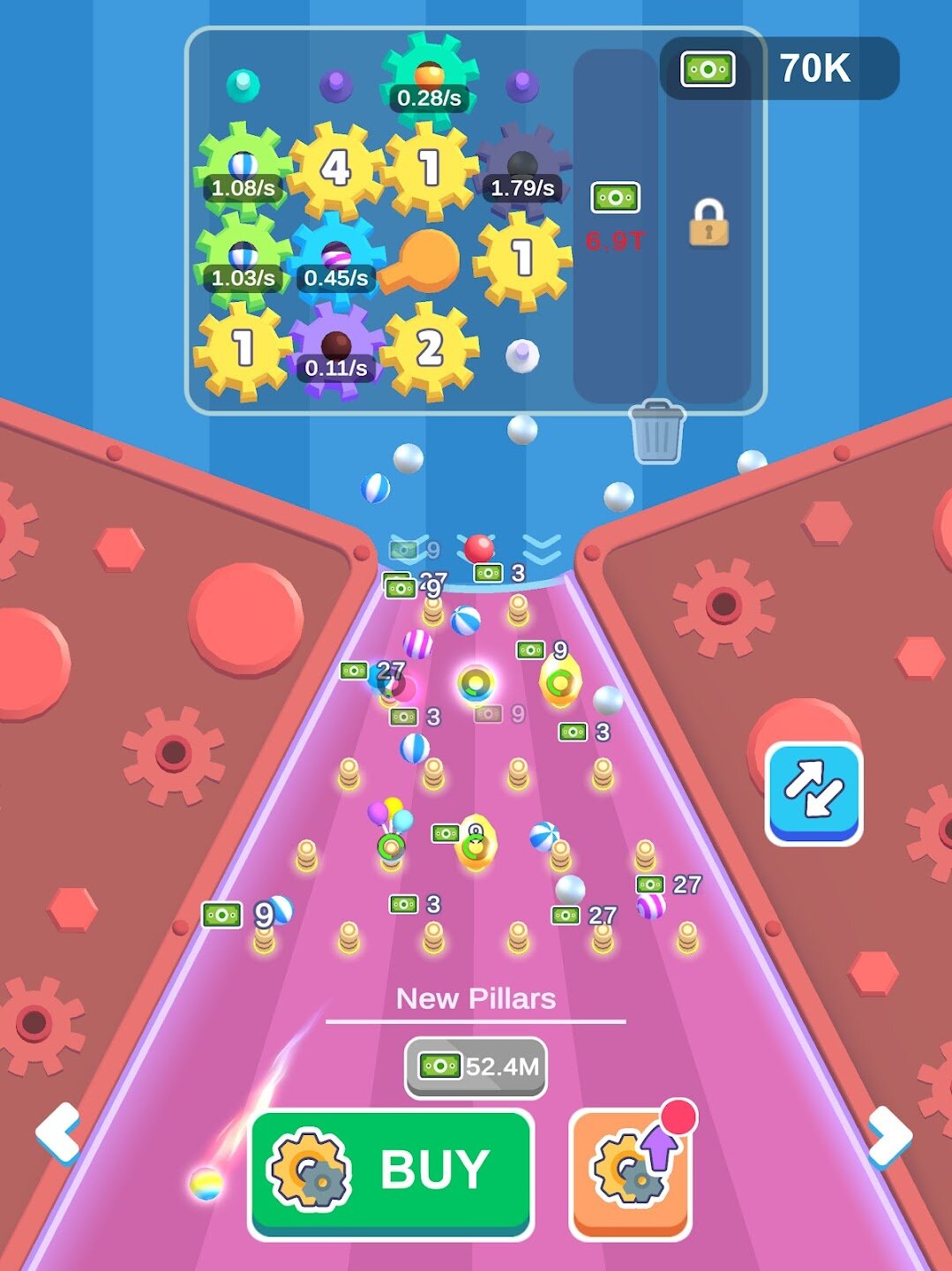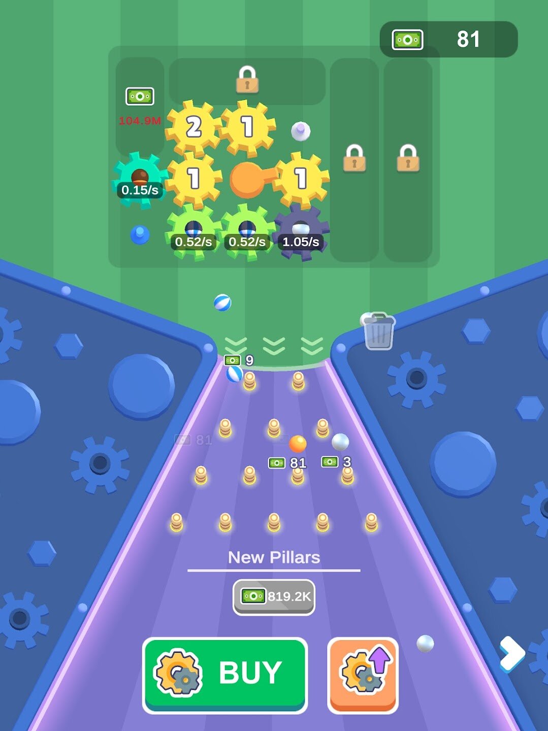 Используйте заработанные монеты, чтобы разблокировать широкий выбор новых шестеренок и специальных бамперов, которые позволят вам создавать более сложные и эффективные машины для генерации пинбола. Каждая новая деталь увеличивает потенциал вашей фабрики по получению сумасшедшего дохода в виде монет. Игровой процесс прост, но увлекателен: решите головоломку с расположением деталей, наблюдайте за хаосом пинбола, собирайте награды и инвестируйте их в создание еще более продуктивного и сложного устройства из шестеренок и пинбола для бесконечного удовольствия.