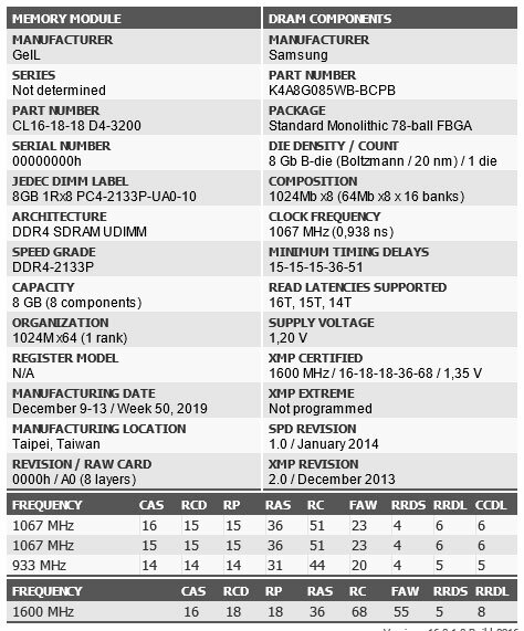 Память одноранговая, на чипах Samsung B-Die, выполненных по техпроцессу 20 нанометров. Учитывая сравнительно невысокую частоту в XMP-профиле, есть надежда, что «оперативка» хорошо пойдет вверх по частоте.