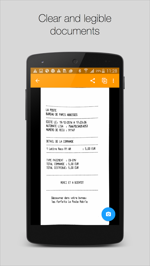 Genius Scan — приложение позволяет быстро сканировать документы на ходу и сохранять сканы в JPEG или PDF. Полезный сканер — приложение позволяет быстро сканировать документы на ходу и сохранять сканы в JPEG или PDF. В дополнение к электронной почте, Genius Scan позволяет легко загрузить в Dropbox, Evernote, отправить по электронной почте и т.д. Genius Scan включает в себя следующие функции: обнаружение страницы, коррекцию, пост-обработку изображения.