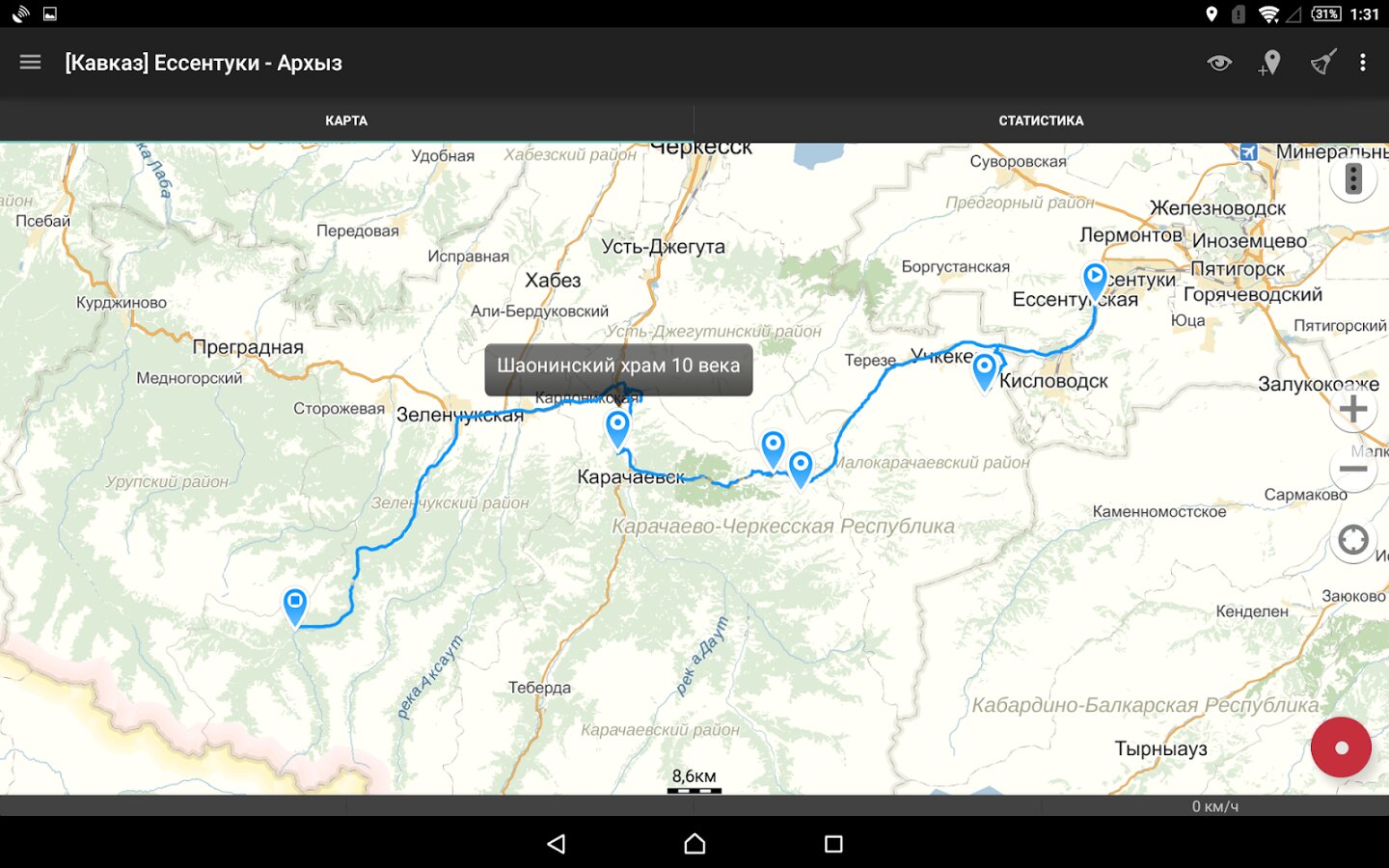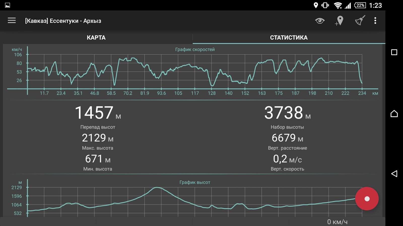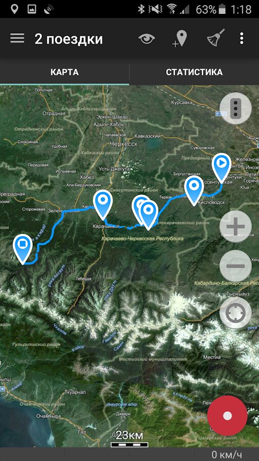Геотрекер — GPS трекер на базе Яндекс Карт будет полезен любителям активных видов спорта и путешественникам. Пользователи смогут записывать gps-треки при помощи Android устройства и делиться результатами со своими друзьями. Предусмотрена возможность использования чужих маршрутов сохраненных в GPX или KML форматах. Приложение позволяет отмечать на карте важные точки. Длина треков ограничена памятью Android устройства. Геотрекер рассчитывает максимальную и среднюю скорость на треке, время и среднюю скорость в движении, перепад высот, минимальную и максимальную высоты, средние углы наклона, набор высоты и прочее.