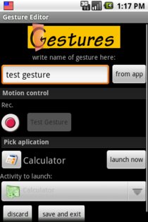 Gestures помогает в большей мере использовать возможности Android-смартфона. Утилита позволяет создавать свои жесты, которые распознает встроенный акселерометр. На эти жесты можно назначить запуск любого приложения. Таким образом при помощи Gestures вы сможете получать доступ к наиболее часто используемым программам даже не глядя на экран коммуникатора.