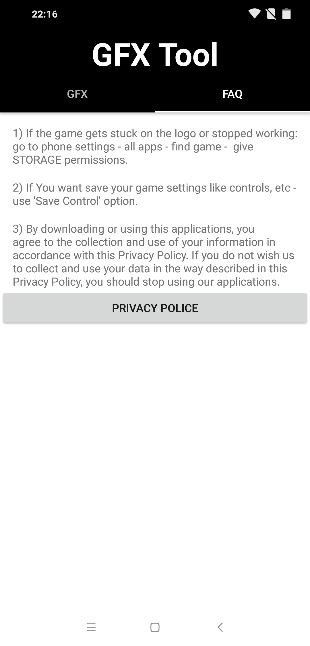 GFX Tool – полезная андроид утилита для пользователей слабых мобильных устройств, которое поможет детально настроить параметры видеоадаптера, чтобы запустить PUBG. Бесплатная программа включает в себя рад настроек, необходимых для оптимизации под конкретные цели.