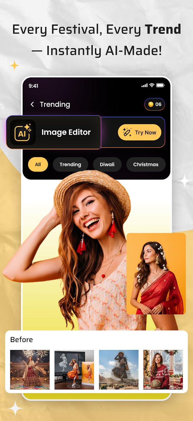 - Стили редактирования изображений на базе искусственного интеллекта, основанные на трендах.