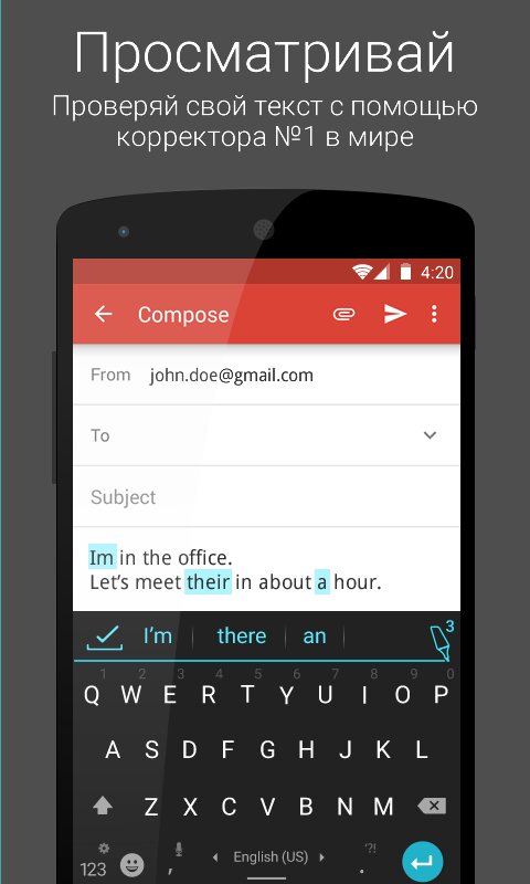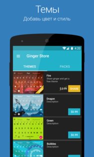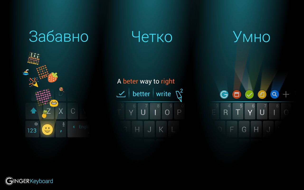 Ginger Keyboard дает вам возможность продвинуться вперед в использовании клавиатур. Эта клавиатура открывает вам возможность переводить англоязычные текста прямо не выходя из приложения. Встроенный англоязычный переводчик, однозначно не один из самых ярких плюсов, также, приложение корректирует вашу английскую грамматику и пунктуацию, как только вы допустите ошибку, приложение сразу же укажет на нее.