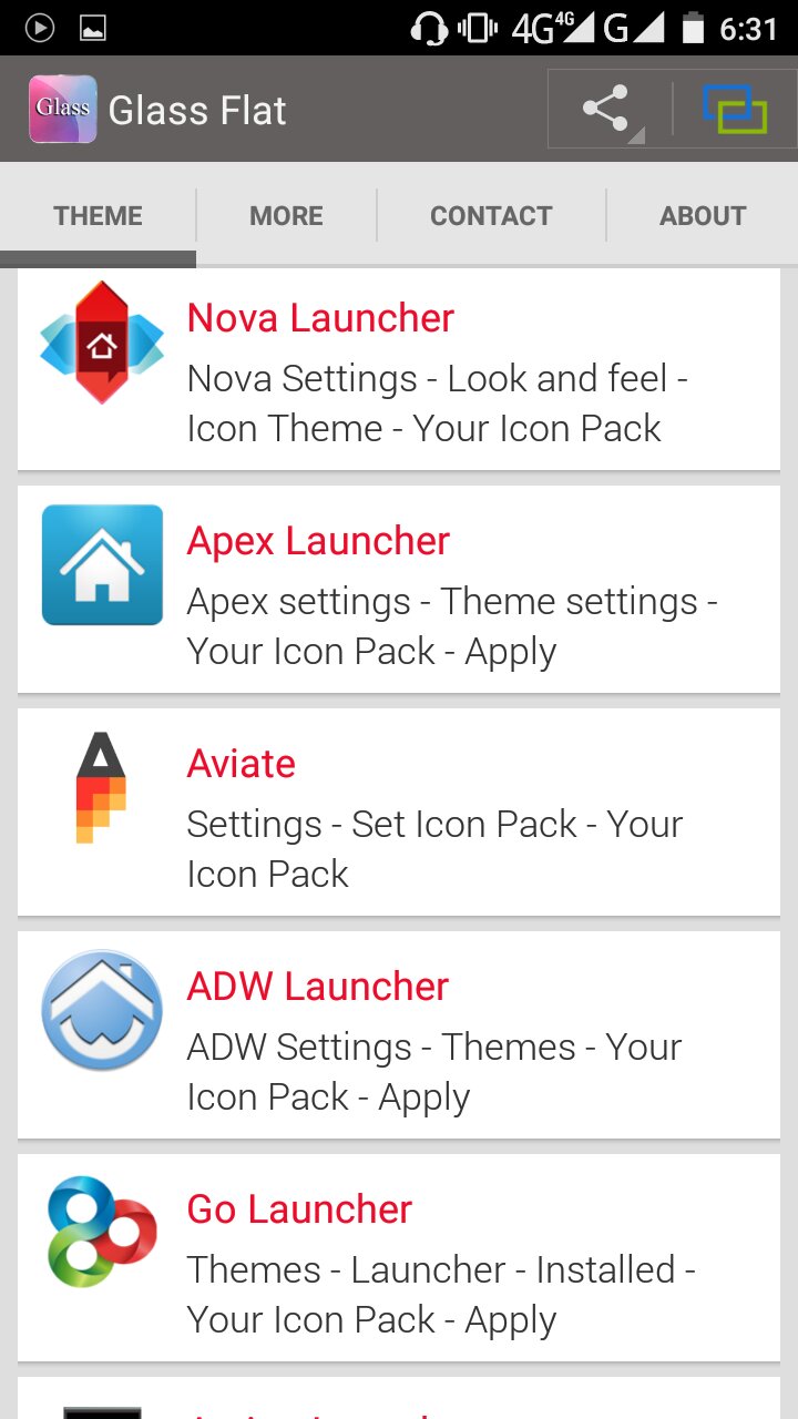 Glass Flat 1 Приложения / Android / Темы Скачать на Трешбоксе Android 4.0+ Стеклянные иконки для популярных лаунчеров.Обновлено: 22 января 2016, 22:12. muratfbi Пользователь Комментариев пока нет Оставьте комментарий...