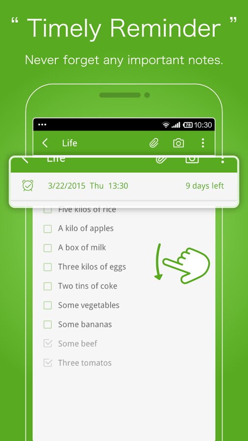 У GNotes также есть виджет, с помощью которого в одно касание можно создать ту или иную заметку. Сохраняются и синхронизируются записи автоматически, в приложении даже не предусмотрено для этого специальной кнопки. Ещё, на каждую заметку можно ставить напоминания или делиться ими с вашими знакомыми.