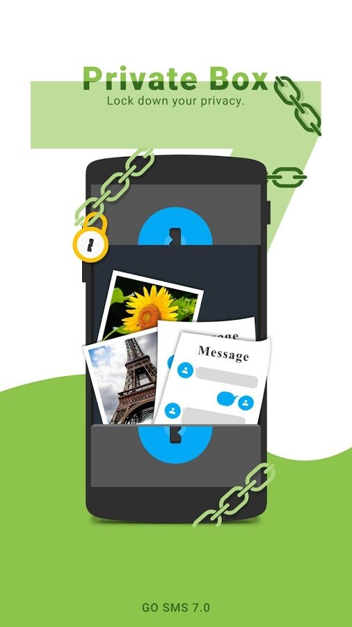 Приложение поддерживает смартфоны с 2 SIM-картами и обеспечит максимальную защиту для каждой из них. А с помощью личного ящика вы сможете защитить свои данные и сообщение путем шифрования. Закрепляйте переписки с важными контактами, выражайте свои эмоции и будьте всегда на связи с GO SMS Pro!