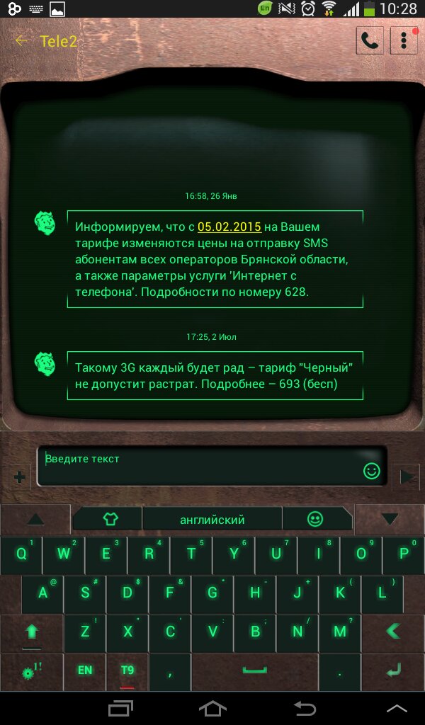 Go SMS Theme Pip-Boy 3000 Приложения / Android / Темы Скачать на Трешбоксе Android 1.6+ Go SMS Theme Pip-Boy 3000 — тематический интерфейс для приложения Go SMS в стиле игр Fallout.Обновлено: 26 июля 2015, 20:30. Andrew_E Пользователь Комментариев пока нет Оставьте комментарий...