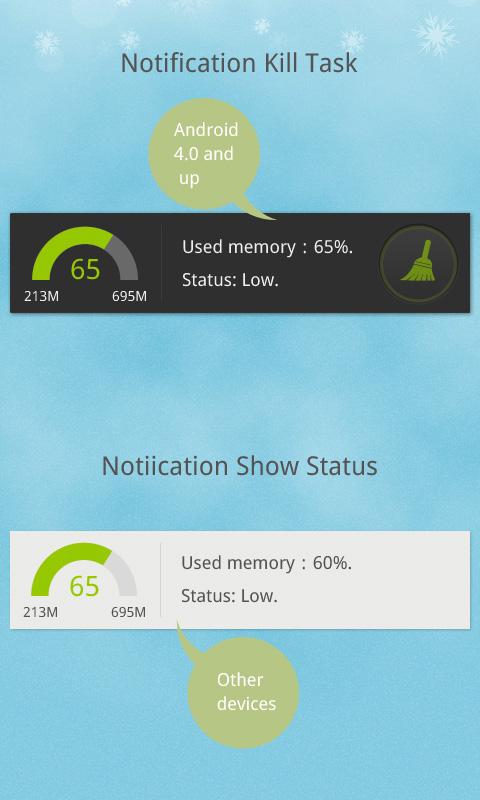 GO TaskManager EX — одним нажатием закрывает все приложения! Очень удобно и быстро закрывать целый список приложений, освобождая оперативную память. Имеет 2 виджета (если ставить на GO TaskManager EX добавляется еще и третий). GO TaskManager EX так же имеет «Белый» список, чтобы можно было задать, какие приложения не следует трогать.