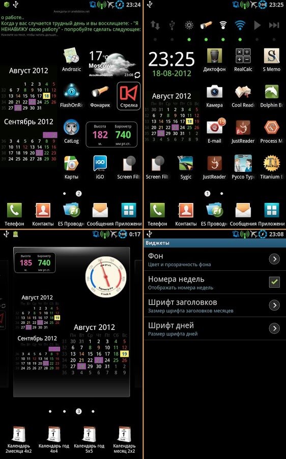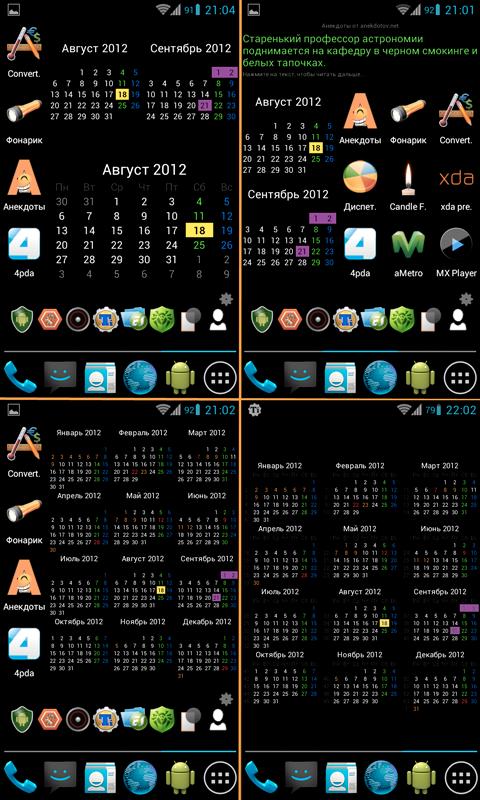 Описание: Программа была специально написана для AMOLED дисплеев (основной фон черный — наиболее экономичнй) и тестировалась на Samsung Galaxy S2 и Samsung Galaxy Note. Впрочем фон можно установить любой и подходит для аппаратов с версией Android 2.0 и выше.