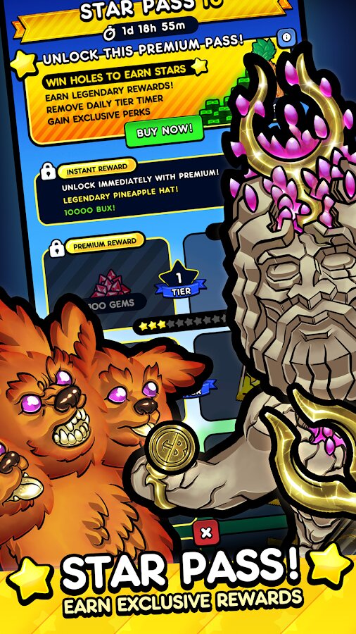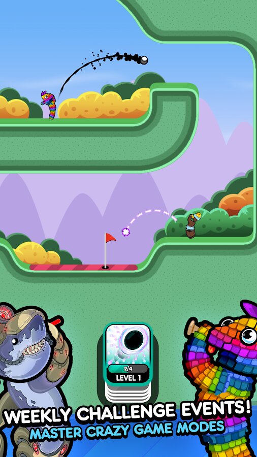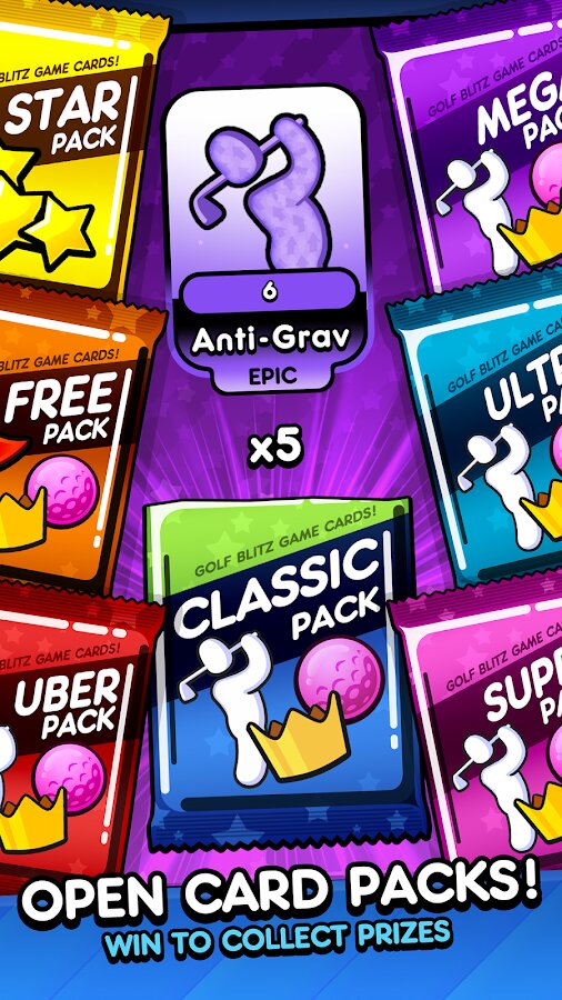 Golf Blitz – объединяйтесь в команды, бросайте вызов друзьям или играйте через Интернет с игроками со всего света, чтобы достичь вершины в клубном рейтинге. Играйте на самых необычных полях для гольфа. Индивидуализируйте своего гольфиста и набивайте свою сумку для гольфа разнообразными усилителями, такими как липкие мячи, гранаты, лазеры и др.