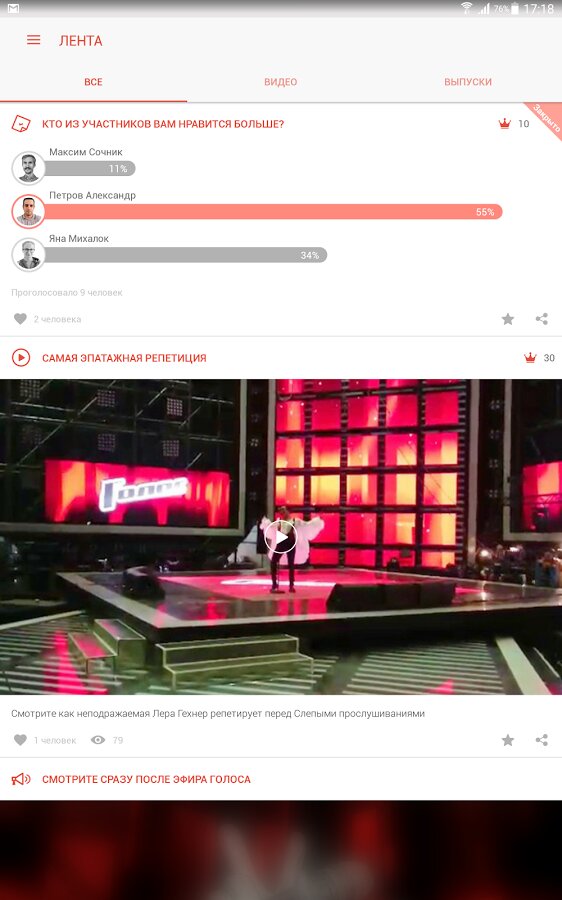 Каждую пятницу по завершении очередного выпуска шоу «Голос», вы увидите в приложении результаты вашей Разминки и Игры, а также бонус за Участников из вашей команды, которые прошли в следующий этап.