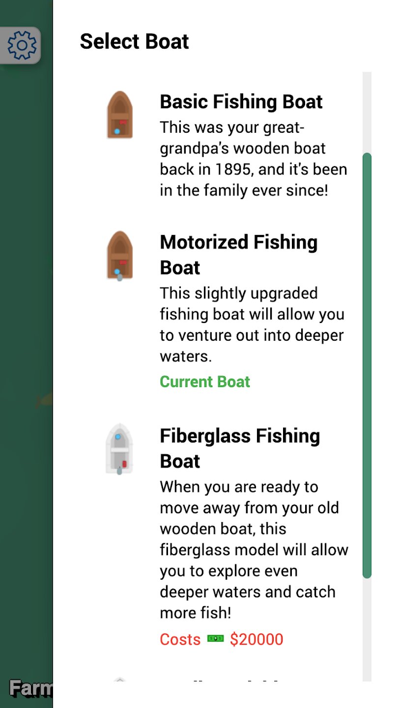 Вы зарабатываете игровые деньги за количество пойманной рыбы. Вы также можете зарабатывать деньги, пока вас нет, с элементами геймплея в режиме ожидания.