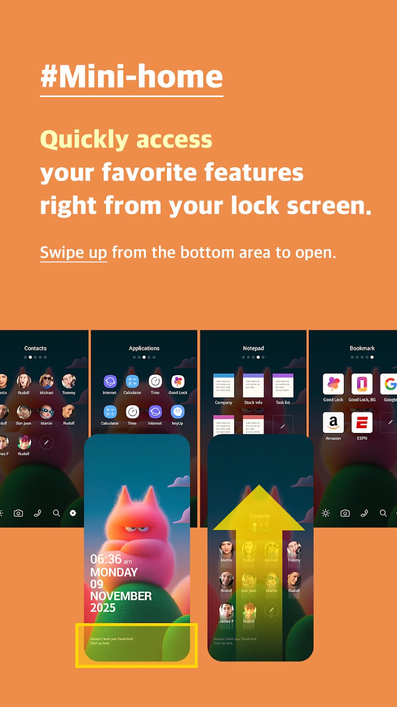 Good Lock — это премиальное приложение для настройки экрана блокировки, которое преобразует первый экран вашего устройства. Оно обеспечивает мгновенный доступ к стильным обоям, созданным с помощью искусственного интеллекта, полезным виджетам и быстрым элементам управления без необходимости разблокировать телефон. Это приложение позволяет персонализировать экран блокировки с помощью уникальных комбинаций сюрреалистических фонов и функциональных инструментов.