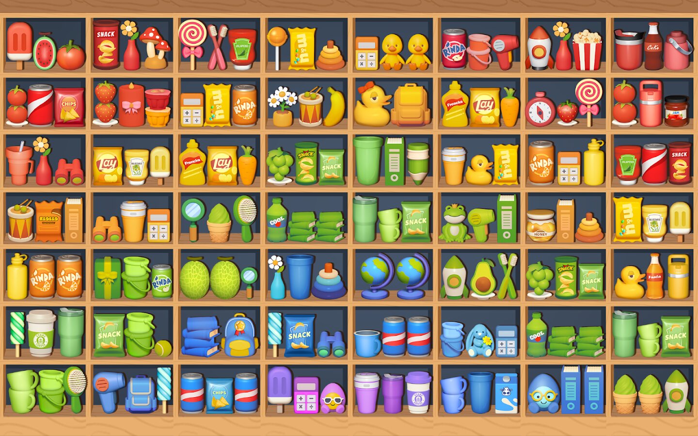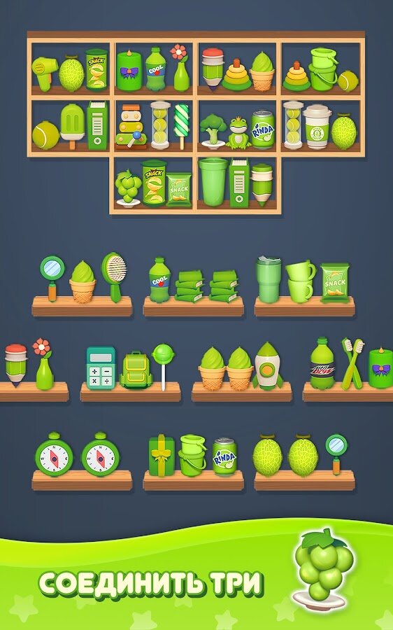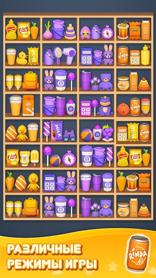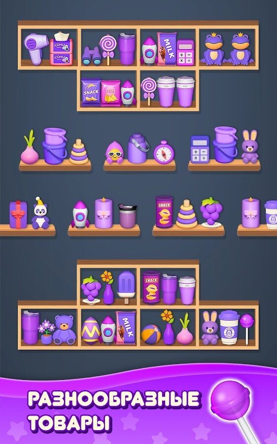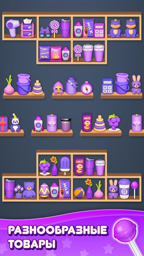 Сортировка товаров: Головоломка Тройное соответствие выделяется разнообразием уровней — от рыночных лавок до садов и складов, каждый с уникальной атмосферой и задачами. Особые товары с эффектами взрывов, зачистки строк и столбцов, а также полезные усилители делают геймплей разнообразным. Ограниченное количество ходов требует продуманной тактики, поэтому каждый ход имеет значение.