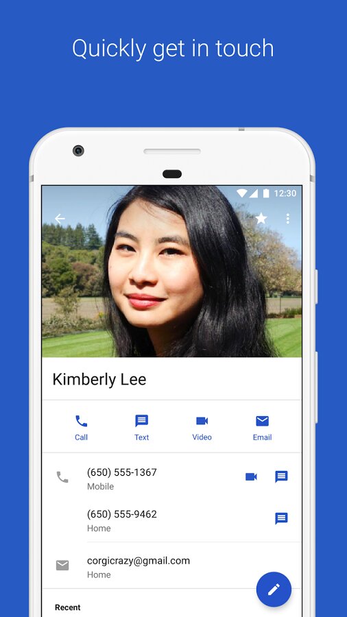 - Получайте доступ к контактам аккаунта Google с любого устройства.
