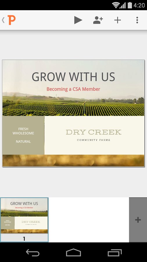 Установите бесплатное приложение «Google Презентации» на свое устройство Android и работайте с вашими презентациями когда угодно и где угодно.