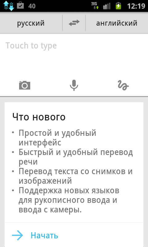 - Ввод с камеры и офлайн-перевод доступны для устройств на платформе Android версии 2.3 и более поздних